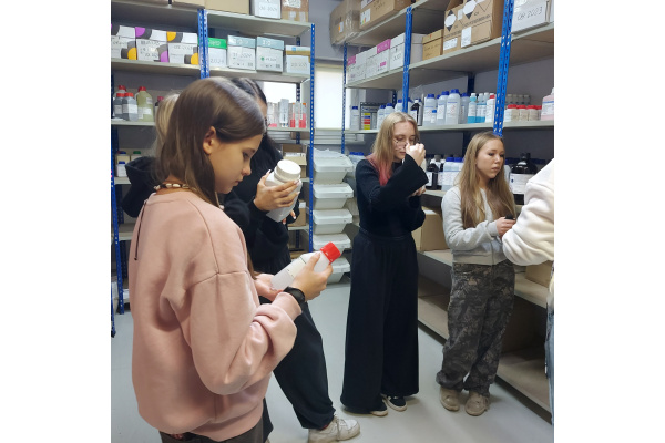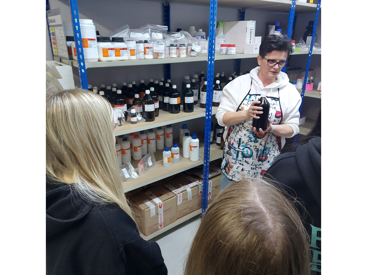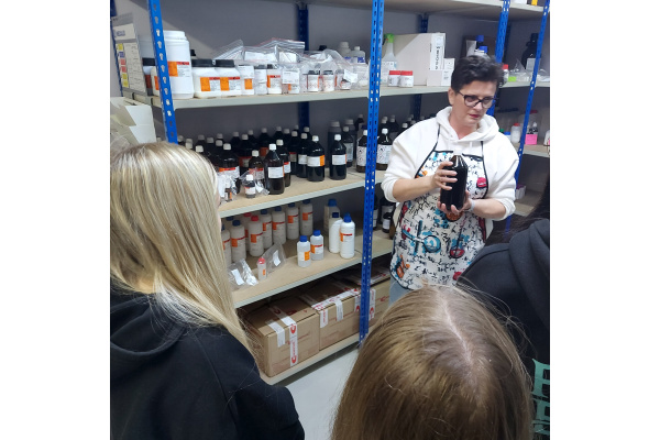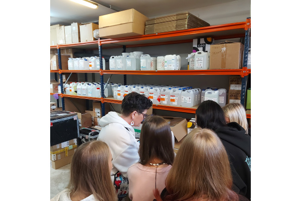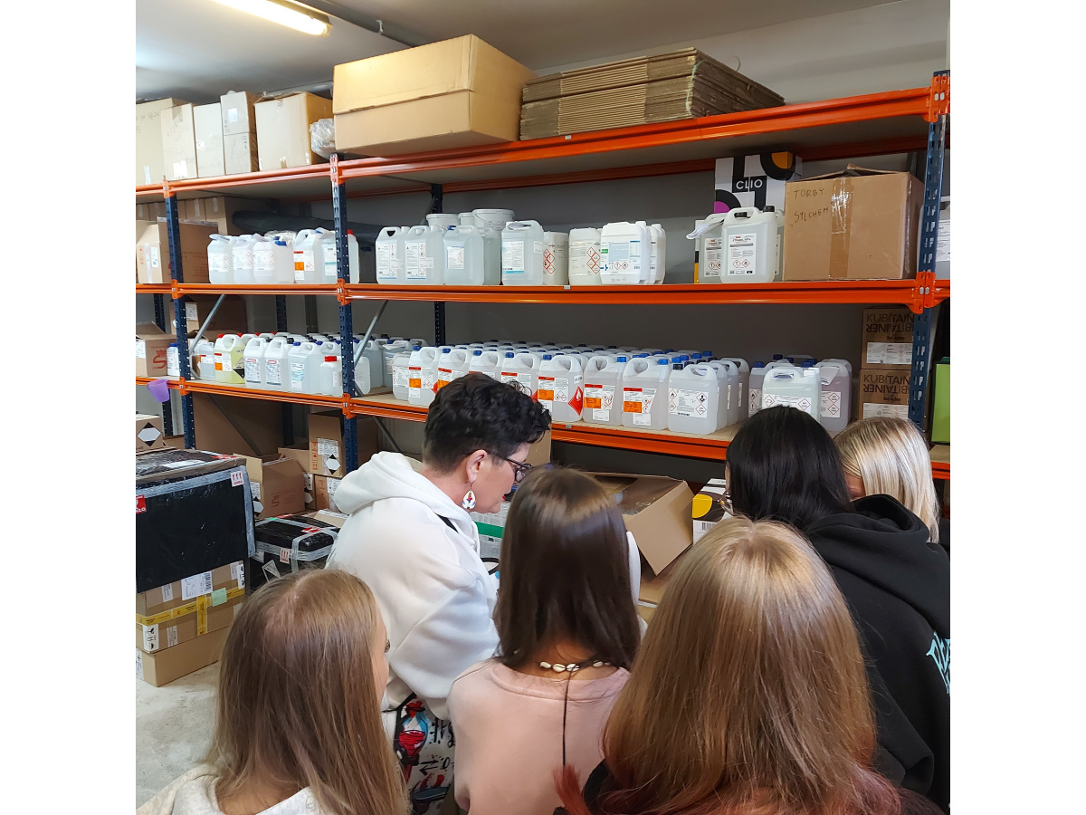 Podczas wycieczki mogliśmy zobaczyć, jak funkcjonuje firma od środka. Naszym przewodnikiem była Właścicielka firmy, która opowiadała nam o procesach dystrybucji, asortymencie produktów oraz o tym, jak ważne jest zapewnienie najwyższej jakości i bezpieczeństwa w obsłudze klientów. Dowiedzieliśmy się, jakie produkty są najczęściej wykorzystywane w laboratoriach i przemysłach, oraz jak wygląda współpraca z producentami i laboratoriami.